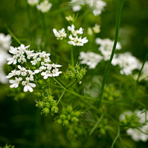 Bei Coriandrum sativum handelt es sich um eine einjährige bis 50cm hohe Pflanze aus der Familie der Doldenblütler (Apiaceae). Alle Pflanzenteile sind stark aromatisch. Wer den Geruch nicht mag bezeichnet ihn als wanzenartig. Auf jeden Fall ist der Geruch sehr speziell und polarisiert. Entweder man hasst ihn oder man liebt ihn. Ursprünglich ist Coriandrum sativum eine ostmediterrane Pflanze er wird aber auf der ganzen Welt als Gewürz- und Heilpflanze kultiviert. Spannend ist, dass heutzutage keine Wildbestände von Coriandrum sativum bekannt sind, es existieren nur noch verwilderte Bestände aus Kulturen. Aus einer schlanken spindelförmigen Pfahlwurzel wachsen fiederschnittige, dreigeteilte, eher rundliche Blätter. Die Blätter am Stiel sind doppelt gefiedert und fein zerteilt. Der doppeldoldige Blütenstand ist eher Flach. Die Blüten sind reinweiss bis rötlich und die randständigen Blätter sind vergrössert um den Bienen die Coriandrum sativum bestäuben den Weg zu weisen. Die Frucht ist rund und kugelig hart und bleibt vergleichsweise lange keimfähig. Am liebsten wächst Coriandrum sativum auf leichtem, sandigen, kalkhaltigen und trockenen Boden an sonnigen bis halbschattigen Plätzen. Coriandrum sativum gehört zu den ältesten Gewürzen der Menschheit. Es wird in alten Sanskritschriften, im Alten Testament sowie im Papyrus Ebers erwähnt. Zu allen Zeiten und bis heute genoss Coriandrum sativum einen hohen Stellenwert als Heil- und Gewürzpflanze.